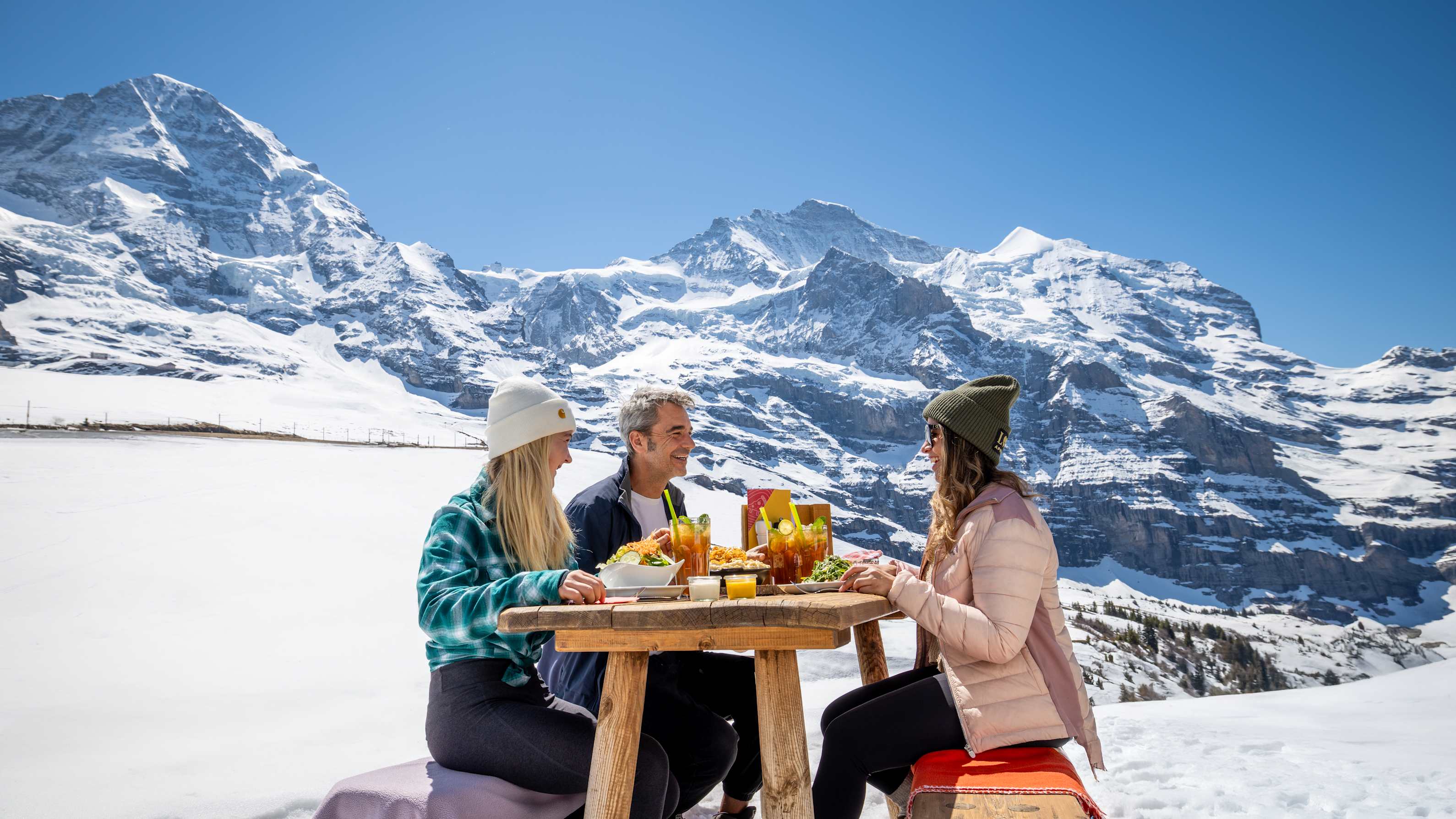 On the sun terrace, you can enjoy delicious Röstizza®, the Scheidegg-Burger or a Jungfrau bratwurst from the grill – with the Eiger North Face within touching distance. But, be careful: Many who only meant to pop in end up staying longer.