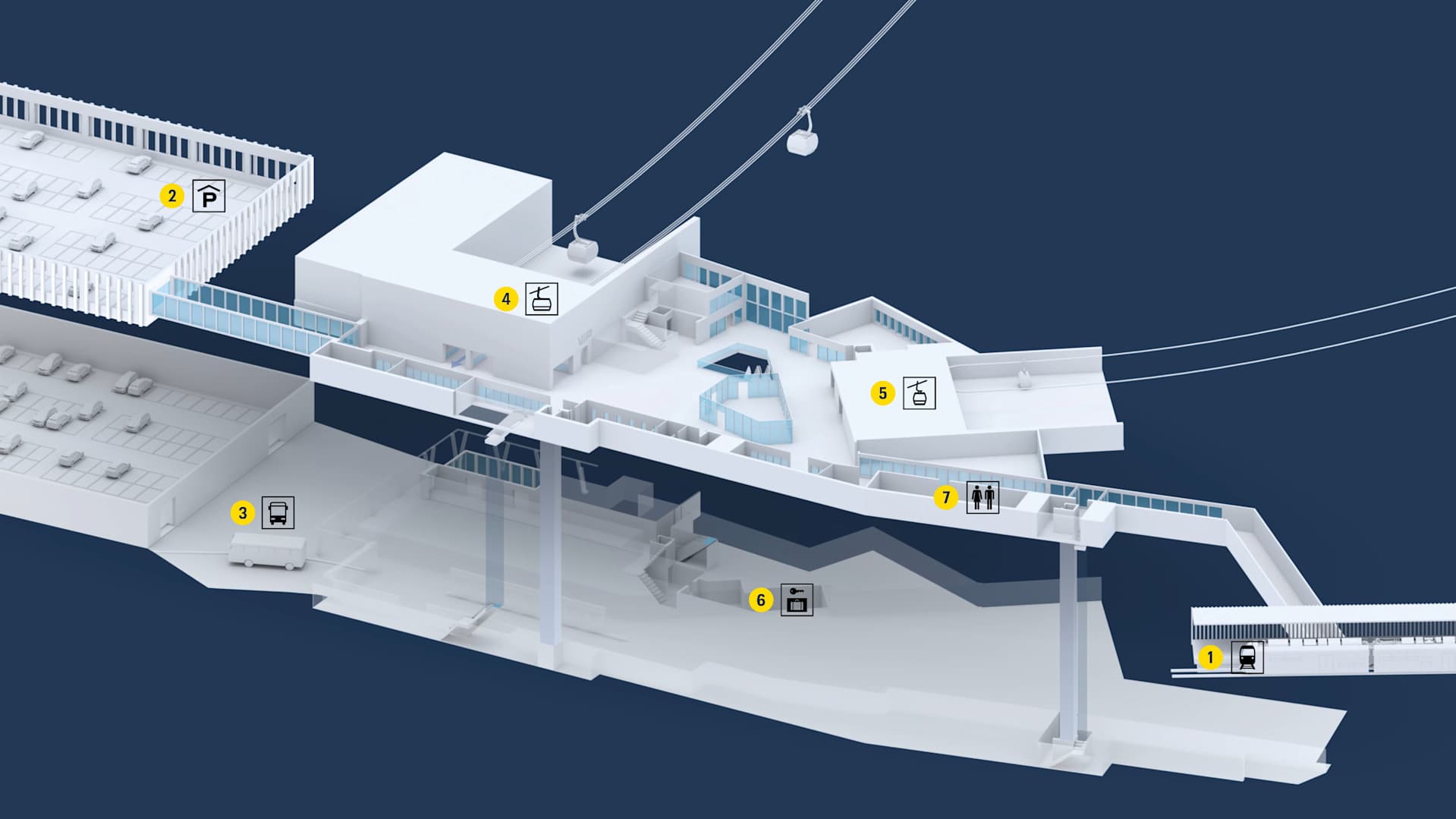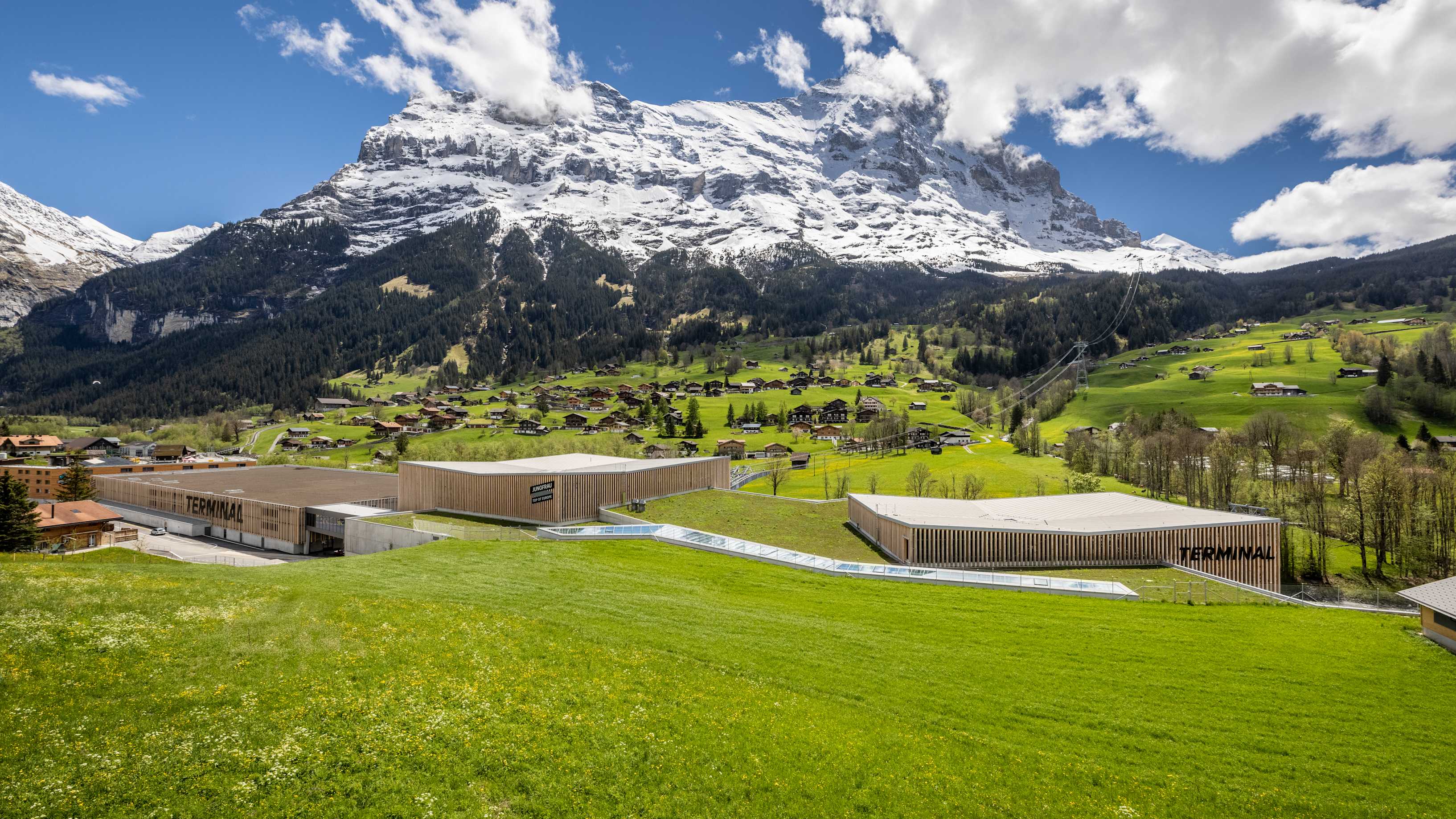 The state-of-the-art terminal, with direct railway connection to the Bernsese Oberland Railway, is the heart of the V-Cableway. The tricable gondola Eiger Express to the Eiger Glacier and the 10-person aerial gondola to Männlichen start here. The terminal also offers a shopping centre with top international brands, quality Swiss products and a sports shop.