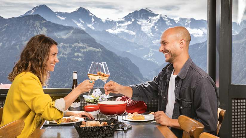 Experience a unique view: far below, Lake Thun and Lake Brienz; straight ahead, the Eiger, Mönch and Jungfrau.