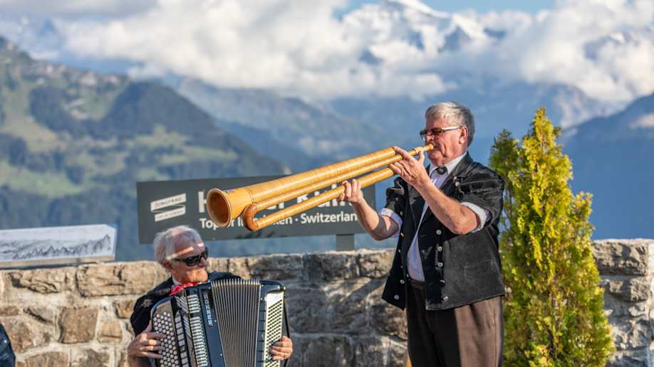 Experience the traditional sounds of the alphorn on the Harder Kulm. Daily at the Panorama Restaurant, against the backdrop of the Eiger, Mönch and Jungfrau.