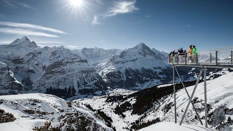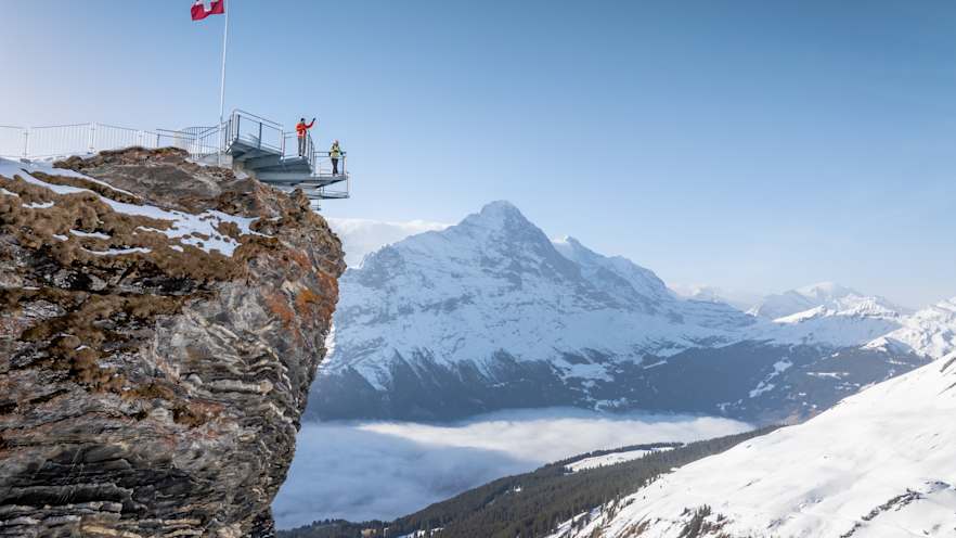 The First View vantage platform on the summit of the First high above Grindelwald offers seven breathtaking views of the Bernese Alps – all year round.