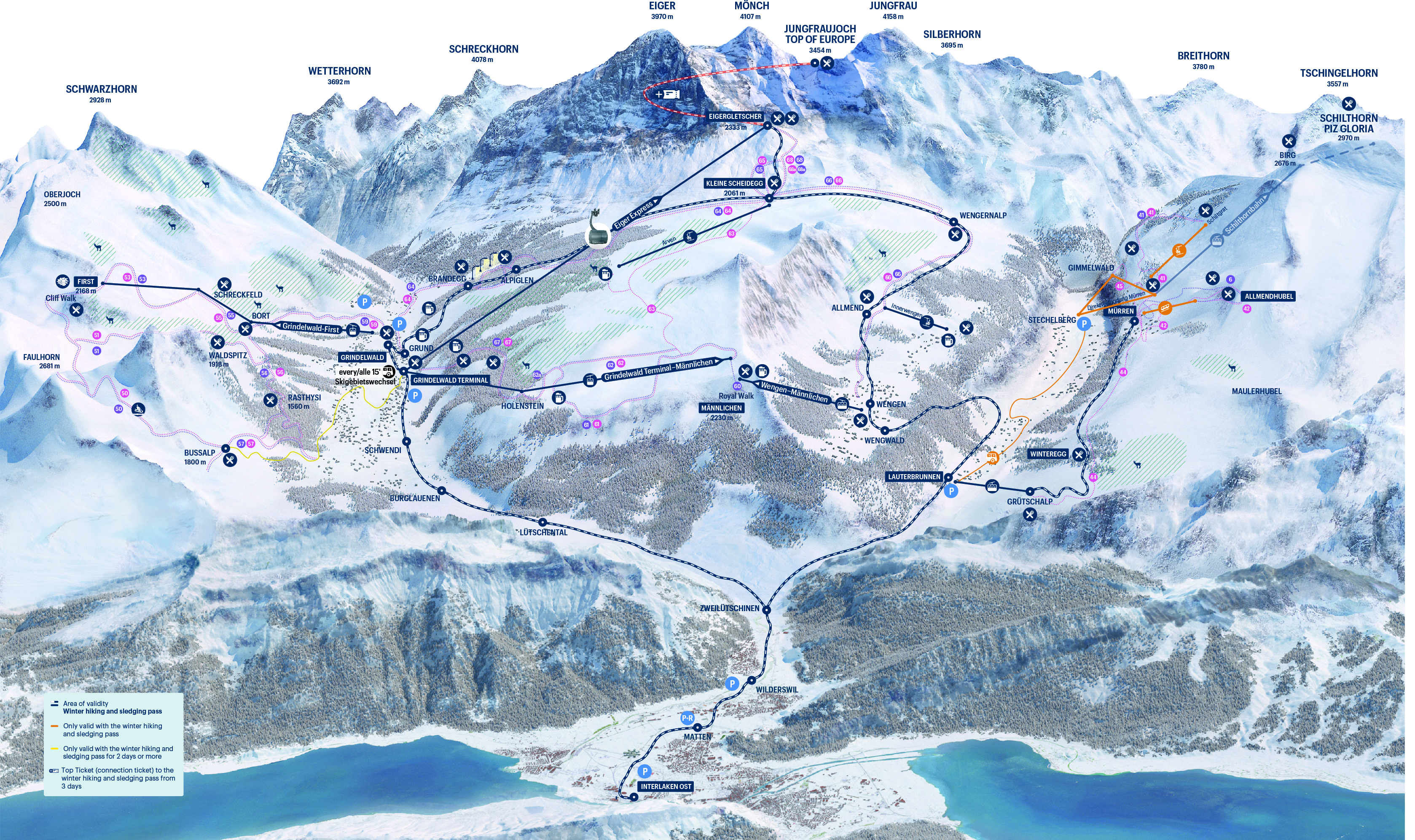 We recommend that you take out insurance when finalising your booking in the webshop. This protects you in the event that you suffer an accident or illness during the validity of the ski pass and are unable to continue using the ski pass. The Jungfrau Ski Region does not grant refunds in the event of business interruption, accident or illness.