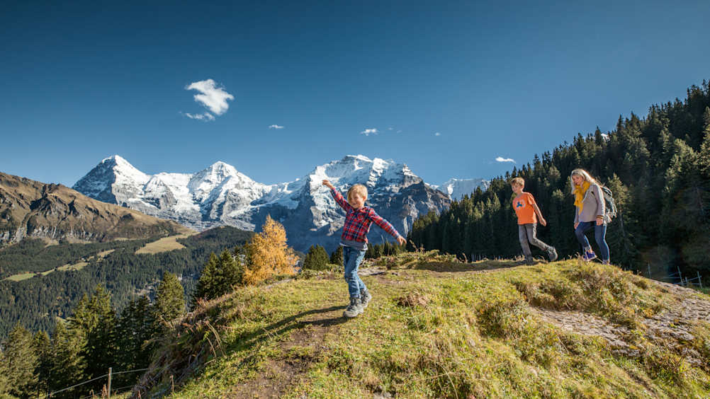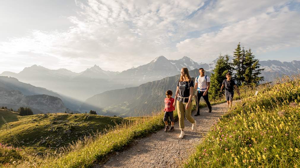 Flowery alpine meadows, exhilarating views of the lakes below and the grandiose panorama of the Eiger, Mönch and Jungfrau: the panorama hike with the mountain station as start and finish offers so much Switzerland in a short time.