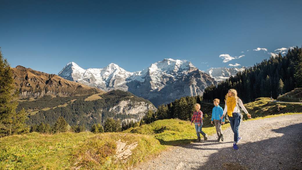 • Hiking with a view of the Eiger, Mönch and Jungfrau